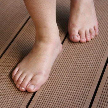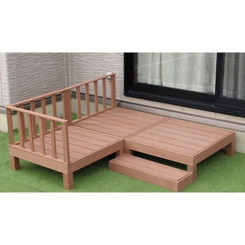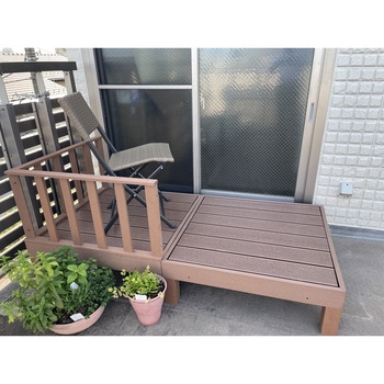 耐久性の高い人工木で、雨風にさらされることによる劣化が起こりづらいデッキです。経年によるささくれの発生がしにくく、子供でも素足でお過ごしいただけます。また、広さや形に合わせてデッキの組み合わせが可能です。