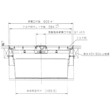 本製品、床開口寸法606×606mmならびに回転取手切欠き寸法23×91mmは長期使用対応部材CjK部材基準に適合しております。