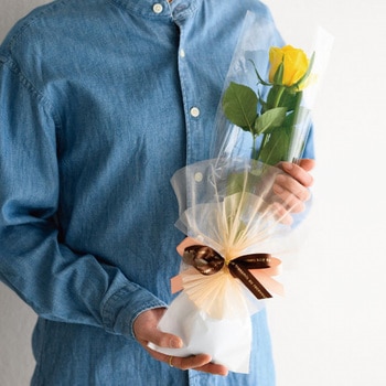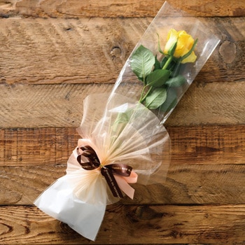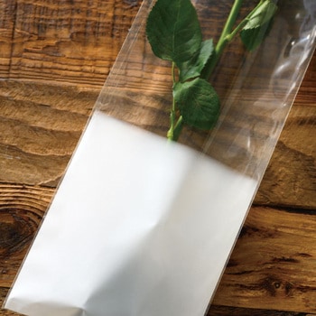 ホワイトのグラデーションがシンプルでどんな花にも合わせやすい一輪用のOPPギフトバッグです。ステム部分が隠れるのでキレイに仕上がります。