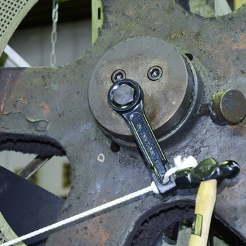 材質は特殊鋼で、衝撃を考慮した硬度でJIS強力級スパナの2.5倍以上の強度をもつ、最も強靭なレンチです