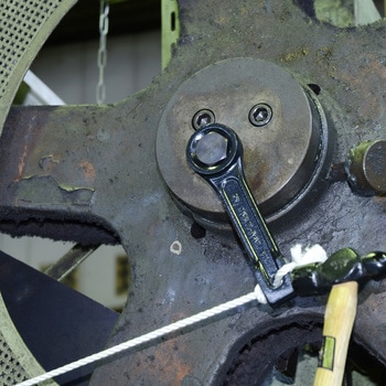 材質は特殊鋼で、衝撃を考慮した硬度でJIS強力級スパナの2.5倍以上の強度をもつ、最も強靭なレンチです