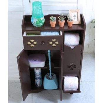 スリムなのに大容量に収納できるトイレラックです。トイレの備品をスッキリまとめて収納できます。トイレブラシを収納できるような縦長の収納や、トイレットペーパーが保管できる収納など便利な機能がついています。