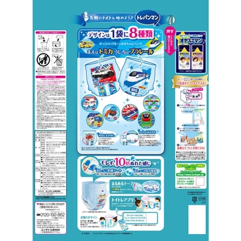トイレトレーニング専用パンツ。モレずに10倍ぬれた感じが分かる「おしっこ実感シート」採用。トミカ・プラレールデザインで1袋に8種類。「おなじえさがし」「わくわくおえかき」でさらにやる気アップ。