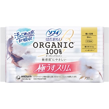 生理中の敏感肌にやさしい、はだおもいORGANICオーガニックコットン100%極うすスリム女性にとって大切な生理期間を少しでも快適に過ごしてほしい。そんな想いから誕生した、生理用品シリーズです。デリケートになる生理中の肌に最もやさしい素材にこだわりました。肌に直接触れるシートにオーガニックコットンを使用しているから自然でやさしい肌ざわり。●デリケートゾーンの肌が触れる面の上層に100%オーガニックコットンを使用。●かゆみの一因であるつきっぱなしの経血を肌に残しにくい。だから、肌への負担を低減し肌にやさしい。●コットン素材は吸水性が高く、装着時に発生するモワモワ汗も吸収。汗がこもらず、肌にやさしい。●高分子吸収材不使用(ノンポリマー)。<以下注釈>※表面シートにコットンの種子殻等が、黒い点で残る場合があります。医薬部外品