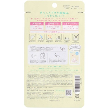 人気イラストレーターNAPPYさんコラボデザイン。気になるトラブルスポットを集中ケアしながら外的刺激からもガードする超極薄パッチ。目立ちにくく、上からメイクもできます。選べる3サイズ入り。