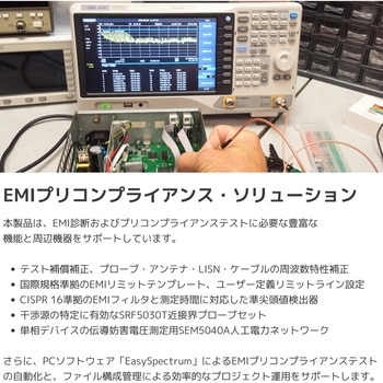【EMIプリコンプライアンス対応】オプションのEMIプリコンプライアンステストキットを追加すれば、CISPR16規格に準拠したEMI測定が可能。近接界プローブ、LISN、アンテナなどの周辺機器と組み合わせて、干渉源の検出やEMI評価を効率化。