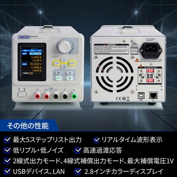 【便利な機能と操作性】2線式/4線式出力モード対応で、最 大1Vの配線損失を補正。5セットのメモリ保存、タイミング出力、パネルプログラミングを搭載し、繰り返し試験も効率化。2.8インチカラーで電圧・電流を鮮明表示。