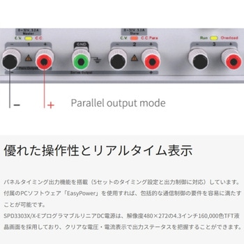【直感的な操作性】4.3インチカラーTFT液晶で電圧・電流を鮮明に表示。タイミング出力やメモリ機能に対応し、繰り返し試験も効率化。付属ソフト「EasyPower」でPC制御や自動試験環境への組み込みも容易です。