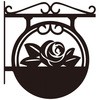 フラワーモチーフの装飾が付いた突き出しアイアンサインです。店舗・表札サインとしてお使いいただけます。