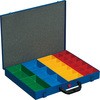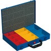 中のボックスは取り外し、組み替えが可能で用途に応じて自由に収納出来ます。フタは閉じるとロックでしっかりと固定され、中のボックスは動きません。ケース本体は頑丈なスチール製のプロ仕様です。ケースステーションEuroPlus Depot M(455805)に格納可能です。