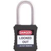 ツルはステンレス製で耐食性があり丈夫です。本体は非導電素材でカバーされており電気トラブルを回避できます。完全に施錠するまで鍵を引き抜けません。-40~160℃の環境で使用できます。メンテナンス作業時に起こる事故の心配を減らす事ができます。