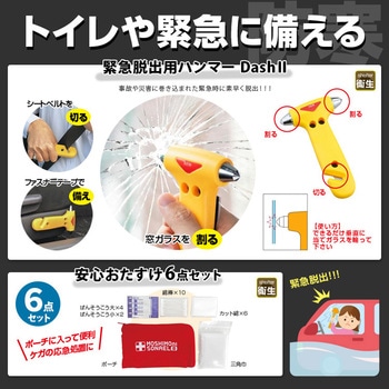防災メーカー厳選の車載用防災セット。運転中に大地震などの自然災害や交通渋滞に見舞われた時、車内にあると役立つ防災グッズを厳選。車に閉じ込められた時の、緊急脱出用ハンマーも入っています。