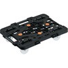 縦・横方向に連結が可能です。(縦連結はオール自在キャスター仕様、オール自在ストッパー付キャスター仕様のみ)スタッキング可能です。メッシュ構造の採用で、従来品よりさらに軽量で移動が簡単です。荷台は堅牢なメッシュリブ構造です。薬品や溶剤にも侵されにくく耐久性に優れています。台上に滑り止め用ゴムが4ヵ所ついています。ナイロン車輪 ルートバンMP-600用コーナーストッパーの取り付けが可能です。(MPK-600シリーズ)