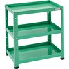 据え置きがメインの現場向けに車輪の代わりにアジャスターを取り付けました。アングル支柱に突起を出し、棚板を固定することにより縦横のゆれを軽減します。棚板は皿型・フラット型の表裏両面使用できます。棚板の組付けは、内側にフランジ付ナットを使用しているため、外側から六角レンチで締め付けることで組み立てが可能です。