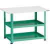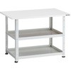 据え置きがメインの現場向けに車輪の代わりにアジャスターを取り付けました。アングル支柱に突起を出し、棚板を固定することにより縦横のゆれを軽減します。棚板は皿型・フラット型の表裏両面使用できます。棚板の組付けは、内側にフランジ付ナットを使用しているため、外側から六角レンチで締め付けることで組み立てが可能です。