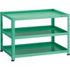 据え置きがメインの現場向けに車輪の代わりにアジャスターを取り付けました。アングル支柱に突起を出し、棚板を固定することにより縦横のゆれを軽減します。棚板は皿型・フラット型の表裏両面使用できます。棚板の組付けは、内側にフランジ付ナットを使用しているため、外側から六角レンチで締め付けることで組み立てが可能です。