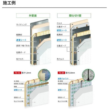 遮音シート壁用軟質のため剛性素材に見られるような可聴周波数範囲での共振による遮音性の低下(コインシデンス効果)が生じません。また、電波障害等の問題も発生しません。従来の工法を変えることなく、静かで快適な空間を創ります。