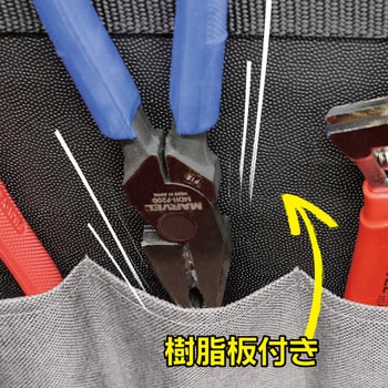 中面ポケット部は樹脂板付で、工具の差し抜きがしやすくなってます。