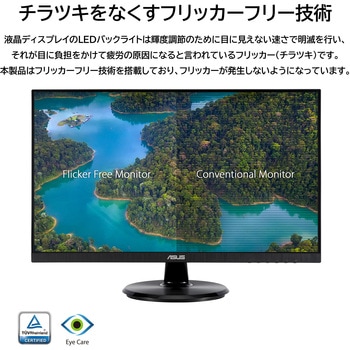 本製品では、LEDバックライトの制御にDC(Direct-Current)方式を採用することで、フリッカーを発生しないようにしています。また、ASUSのフリッカーフリー技術はTUV Rheinlandの認証を取得しており、その効果が証明されています。