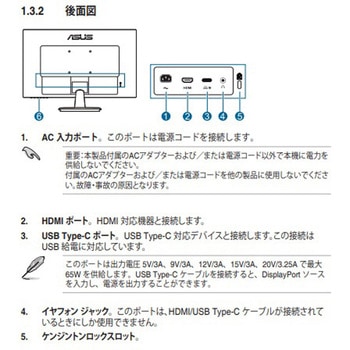 USB-Cポートは、USB-Cケーブル1本でDisplayPort信号での映像伝送と、65Wの電力供給に対応しています。