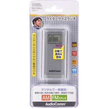 ライターサイズのイヤホン専用デジタルポケットラジオDSPデジタルチューナー内蔵感度の良い局を自動選局、AM/FM各20局まで自動登録照明付き液晶表示デジタル音量表示クロック機能ワイドFM(FM補完放送)対応誤操作防止機能付きステレオイヤホン付属