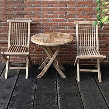 ガーデンインテリアにおすすめの、テーブルとイス2脚のセットです。