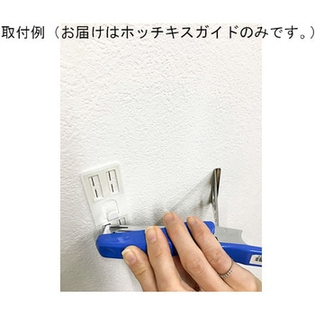 石膏ボード壁に設置可能な金具、「壁美人」を取り付ける際に使用するホッチキスに取り付ける打ち込みガイドです。壁美人金具を取り付ける際にホッチキスに取り付ける打ち込みガイドです。壁に針を打ち込む際、打ちやすくするガイドです。但し、ガイドがなくても取り付けは可能です。推奨ホッチキスのMAX社製HD-10Dを基に開発した専用ガイドであるため、これ以外のホッチキスにはしっかりセットできない場合がございます。