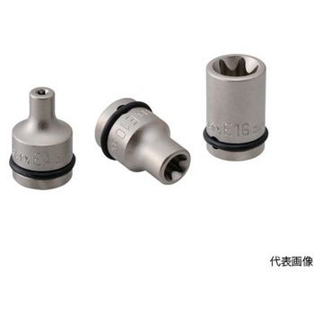 E形トルクスねじ用のソケットでインパクトレンチで使用できます。E型トルクスねじの締付け、緩め作業用。Oリング、ピンは正しいサイズのものを確実に固定してから使用してください。Oリング、ピンは消耗品です。劣化、摩耗したものは交換してください。