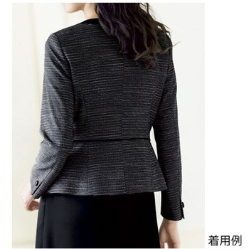黒と白の糸で表現したボーダー柄のツイード素材。知的さと女性らしさを併せ持つエレガントな表情が魅力です。黒無地のジャケットやボトムとの相性も良くホテルなど接客系の業種から信頼感の重要なオフィスまで、幅広くご着用いただけるシリーズです。