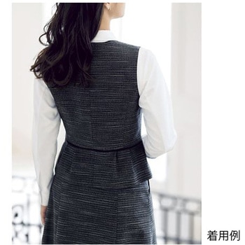黒と白の糸で表現したボーダー柄のツイード素材。知的さと女性らしさを併せ持つエレガントな表情が魅力です。黒無地のジャケットやボトムとの相性も良くホテルなど接客系の業種から信頼感の重要なオフィスまで、幅広くご着用いただけるシリーズです。