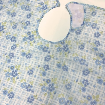 レギュラーサイズなので、食卓に広げて使用できます。下に垂らしても裾が床に付かず汚れません。面ファスナーなので首まわりの調節が簡単にできます。水や油をはじき、速乾性に優れています。軽くて耐久性があり、シワになりにくい素材を使用しています。