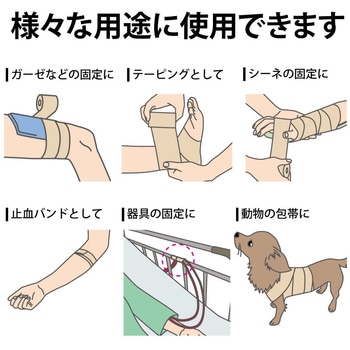 包帯どうしがピタッとくっつく自着性包帯包帯どうしがピタッとくっつくため巻き終わりのテープ留めいらず肌や髪の毛につかないため、巻きやすく巻き直しも簡単ラテックスアレルギーの心配がなく、肌にやさしいラテックスフリー伸縮性があり関節部のサポート、固定に便利ガーゼ等の様々な固定にハンドカットも可能、はさみでカットする手間が省けて便利