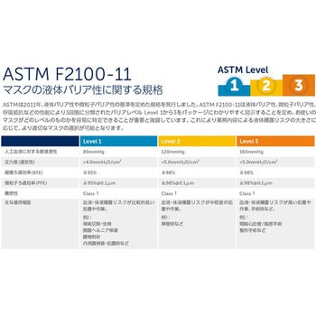 NIOSHのN95基準に適合、液体防護性能(ASTMレベル3)を有したN95マスクです。