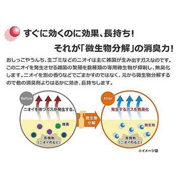 バイオ先進国アメリカが開発したバイオ消臭剤。微生物の力でニオイの元から素早く分解、無臭化します。お子様やペットのいるご家庭でも安心安全です。