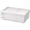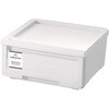 引出しの落下を防止する引出ストッパー付。上下にワイドな引手部付きで、上からでも下からでも手を掛けられます。