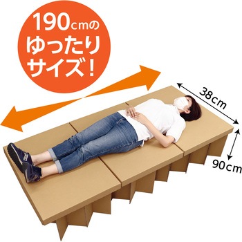 材質:ダンボール。サイズ:W1900×D900×H380mm(使用時)、W760×D650×H170mm(収納時)。セット内容:本体×1