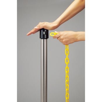 ロープでもチェインでもシーンに合わせて使い分けることができる便利な2WAYスタンドです。ステンレス製なのでさびにくいです。ヘッドを上から押しながら差し込み、放すと固定できる簡単取付機構です。ベースは凝固剤入りの砂鉄を高密度ポリエチレンでカバーしているので、水、さび、摩耗に強いです。