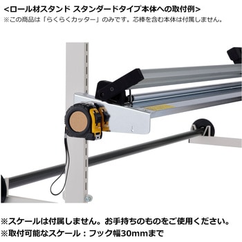 スケールを取付することで、カット作業時にロール材の長さを測ることができて便利。※フック巾は30mmまで。