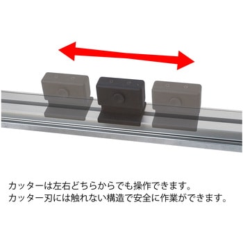 らくらくカッター側面部のブラケットに市販スケール取付用穴と矢印穴付き。