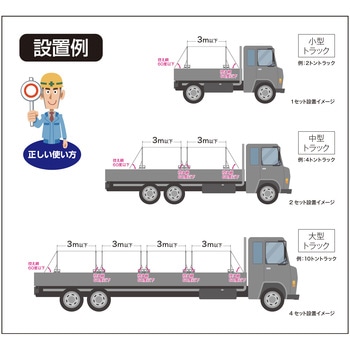 ※トラック用あおり支柱は、落下時の衝撃を軽減するための補助具です。必ず2本セットで使用し、親綱は1人でご使用ください。