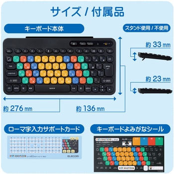 付属のローマ字入力サポートカードや、メモなどを立てかけられるカードスタンド付きです。
