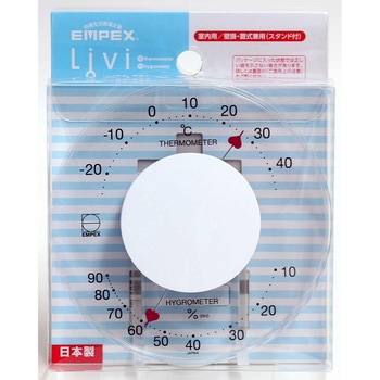 透明なクリアアクリルのアナログ温湿度計です。温度計と湿度計の針先がハートのかわいいデザイン。シンプルでモダンなデザインでお部屋のインテリアとしても最適です。置き掛け兼用で様々な場所への設置が可能。アナログ式ですので電池不要、操作不要でお使いいただけます。安心と信頼の日本製。