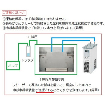 冷却水循環装置によって冷却された冷却棚で凍結状態を維持します。