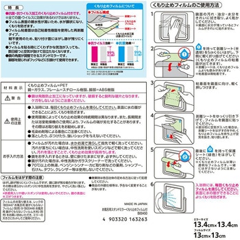 抗菌・抗ウイルス加工のくもり止めフィルム付きです。フィルム表面の親水性が高いため、水が膜状になり、くもりを防ぎます。フィルム粘着面は自己粘着性樹脂を使用した再剥離タイプ。糊不使用のため、貼り付け面にはがし跡が残りにくいです。フィルムを貼る時にごくわずかな気泡が入っても、数日経つと空気が抜けて目立たなくなります。鏡の角度が調整できるスタンドミラーです。脚部を閉じればフックなどに引掛けて使用できます。
