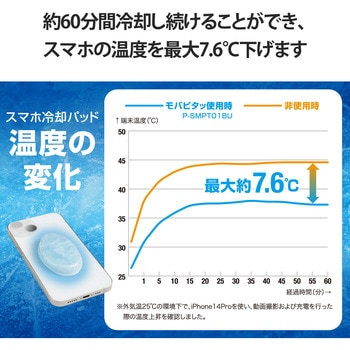約60分間冷却し続けられ、スマートフォンの温度を最大7.6℃下げます。