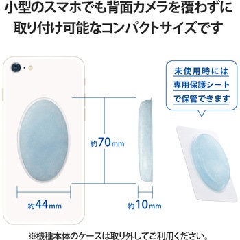 約44×70mmで、小型のスマートフォンでも背面カメラを覆わずに貼り付けできるコンパクトサイズです。