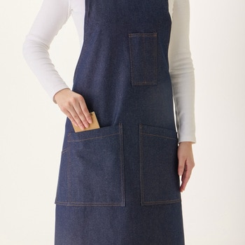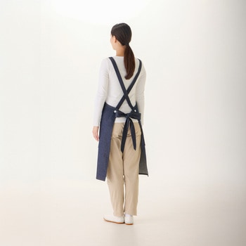 おしゃれなデニム素材のひもで縛ってとめるタスキ掛けタイプのエプロンになります。事務作業から現場作業まであらゆるシーンでお役に立ちます。作業に便利なペン差しポケットやちょっとした工具が収納できるポケット(左右)付です。肩掛け紐をボタンの付替でストレートとクロス(タスキ掛け)に切替えての使い分けが可能でございますので、用途に合わせておつかいください。