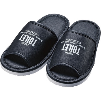 ビニールレザーのトイレ専用スリッパ。ゆったり幅広で履きやすい。厚めのEVAビニール底材を使用。汚れてもサッと拭けて清潔です。