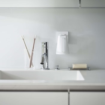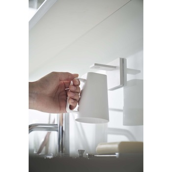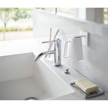 フィルムフックで好きな位置に簡単取り付け。マグネットで浮かせて収納できるタンブラー。宙に浮くからタンブラーがぬめらず衛生的。タイルにも取り付け可能。光沢のある壁面にフィルムフックで簡単取り付け。タンブラーはマグネットで簡単収納。