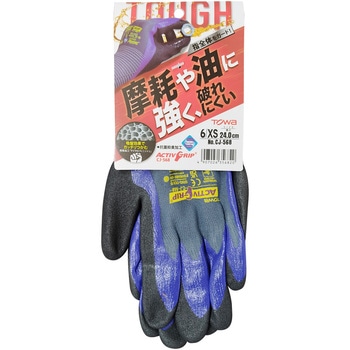 指全体にコーティングを施しており、油や汚れが手袋内部に浸入しにくい構造となっています。手のひら側に施された特殊スベリ止め「マイクロフィニッシュ加工」は、油をともなう作業でも高いグリップ性能を発揮します。ニトリルゴムをコーティングしているため、油や突き刺し・引っ掻きに強く、耐摩耗性に優れています。抗菌抑臭効果のあるサニタイズ加工を施しています。